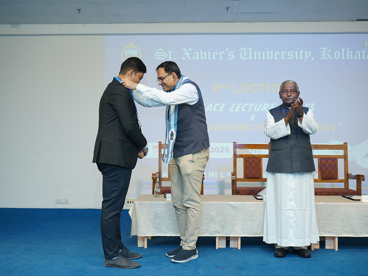 In this convocation, SXUK conferred the Doctor of Science (D.Sc, Honoris Causa) on Rev. Dr. S. Ignacimuthu, S.J., a noted Bio-scientist and the Doctor of Law (LL.D, Honoris Causa) on Mr. R N Jhunjhunwala, a renowned barrister respectively.